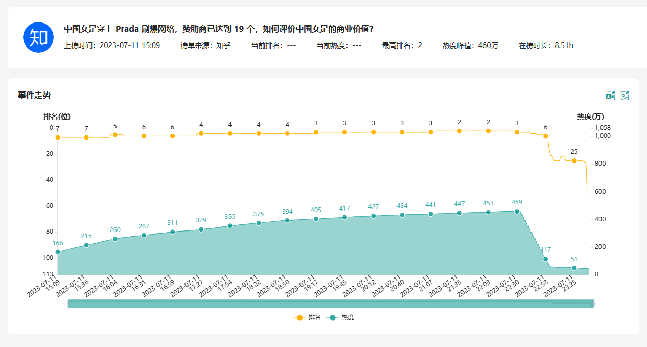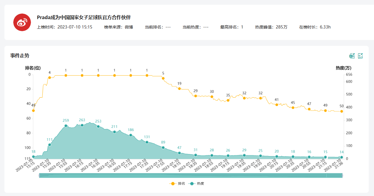 中国女足,Prada,舆情监测,热点话题,