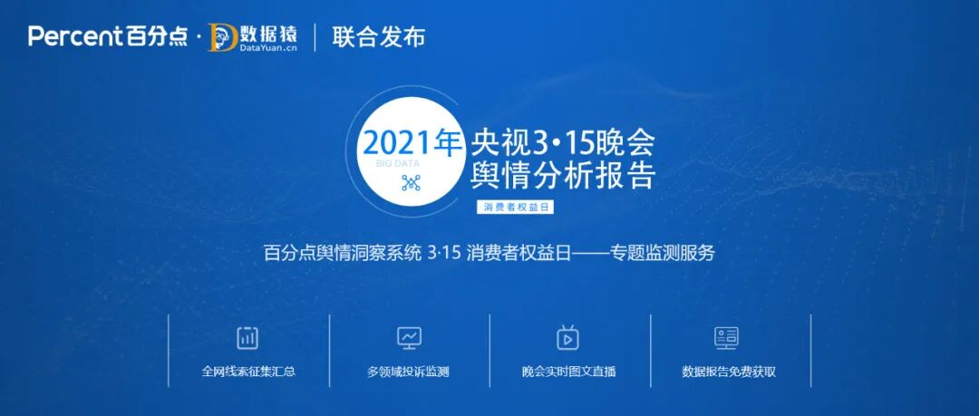 百分点科技与中国权威的大数据产业创新服务媒体数据猿,基于对3·15晚会期间的舆情走量分析,继发布《“数”看2021年“3•15征集令”》、《2021年央视3·15晚会事件预测分析》报告后,再次联合推出《2021年央视3·15晚会舆情分析报告》,以下是报告主要内容。