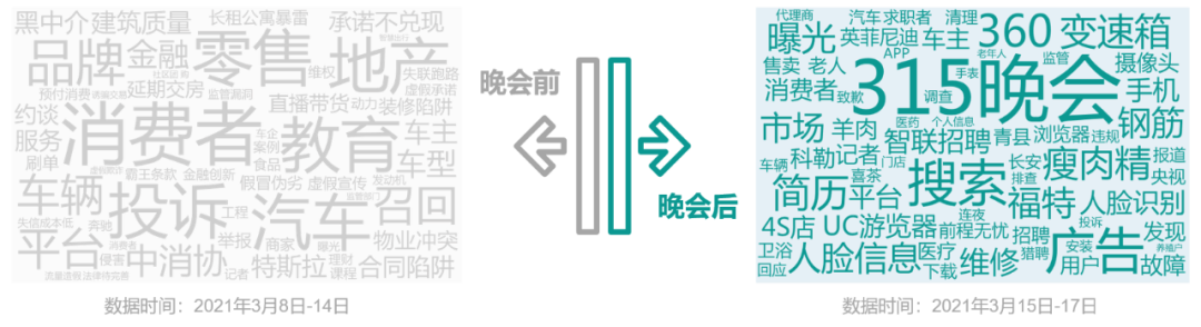 2021年央视3•15晚会已落下帷幕,晚会曝光内容涉猎较广,覆盖个人信息安全、食品安全、虚假广告、售后服务、产品质量问题等多个领域,曝光事件引起消费者们高度关注和热议。那么,热议方向有哪些?相关企业、地区又是如何回应的?