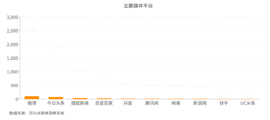 从媒体平台来看,新浪微博、今日头条、搜狐新闻等平台的讨论声量相对较高,社交媒体及网民的关注、讨论、参与度均较高。